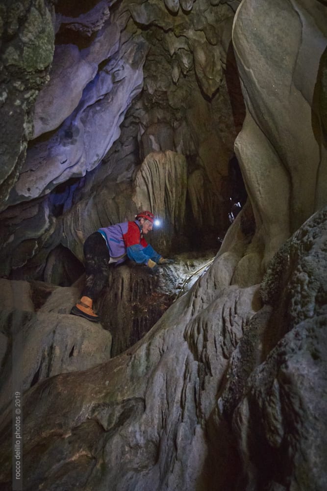 Proseguendo si troveranno altri dislivelli di pochi metri da superare anch’essi con l’utilizzo della corda. Questa grotta attraversa calcari oolitici per poi immettersi nei calcari grigi ricchi di concrezioni ed è costituita da vari meandri che seguono l’andamento di una serie di fratture che si intersecano tra loro.