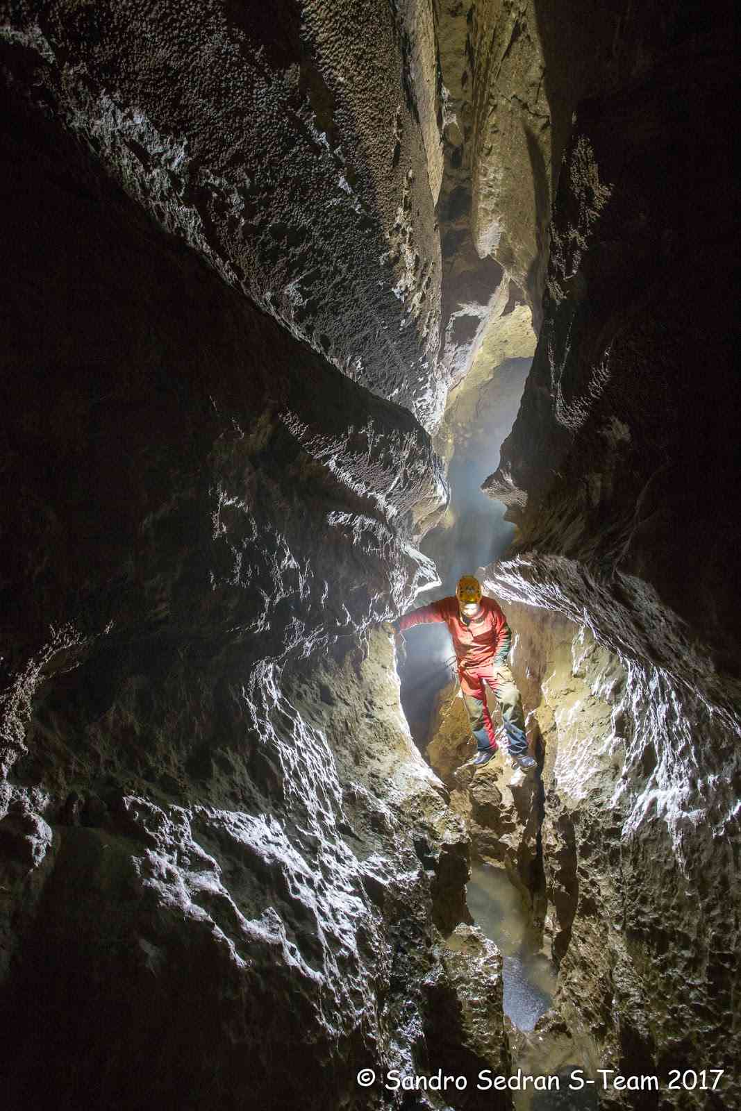 La discesa nella pressoche’ verticale 791Lo prevede una serie consecutiva di pozzetti decametrici intervallati da brevi cunicoli orizzontali, perlopiu’ resi transitabili con disostruzioni.
