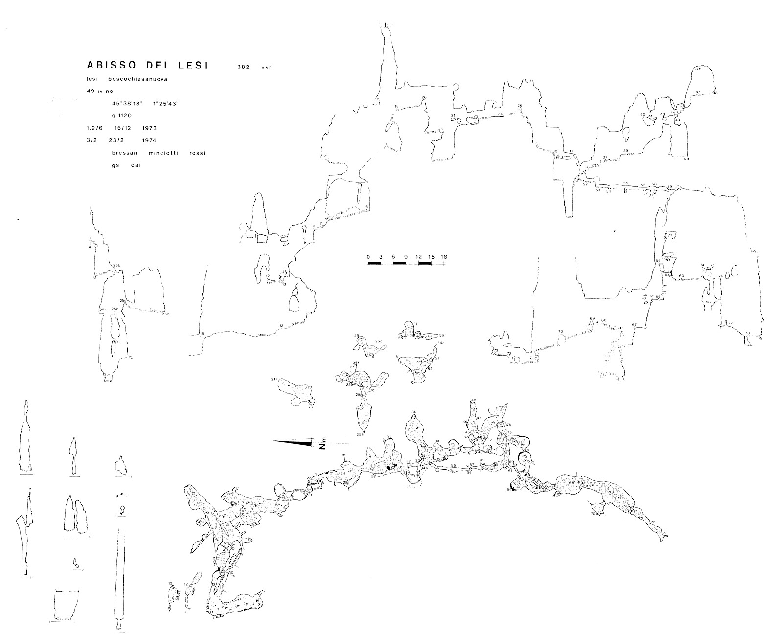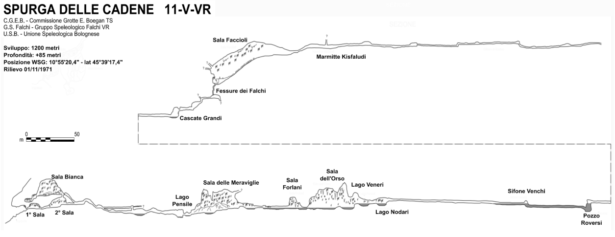 1968/70 – Varie spedizioni guidate da ASV ( oggi GS Cai Verona) esplorano l’ abisso scoprendo in particolare le diramazioni laterali alla testa del secondo pozzo (Via Nuova) .