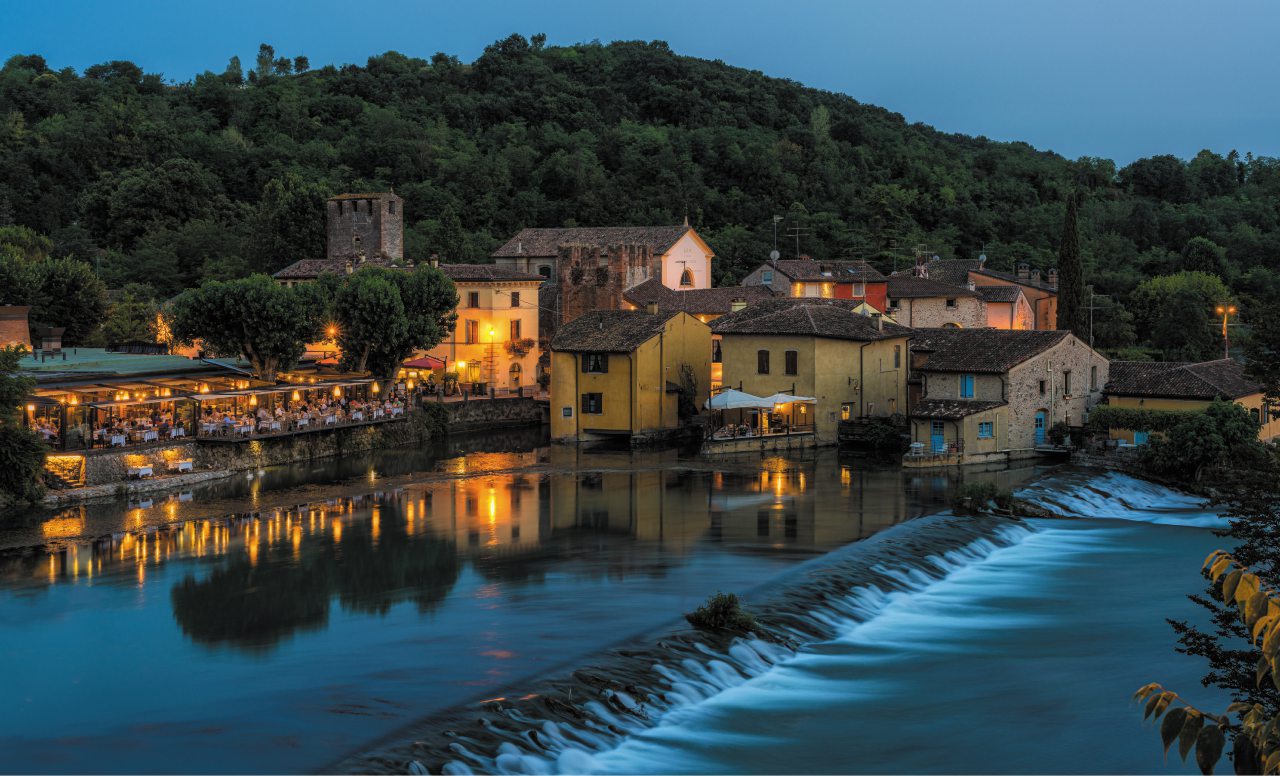 Passeggiando tra i vicoli acciottolati, sembra di tornare indietro nel tempo. L’atmosfera romantica è resa ancora più magica dal Ponte Visconteo, una diga-fortezza costruita nel XIV secolo dai Visconti di Milano, che collega il borgo all’imponente Castello Scaligero. L’intero paesaggio è perfettamente inserito in un contesto naturalistico unico, tra acque trasparenti, ponticelli fioriti e il verde rigoglioso del Parco del Mincio.